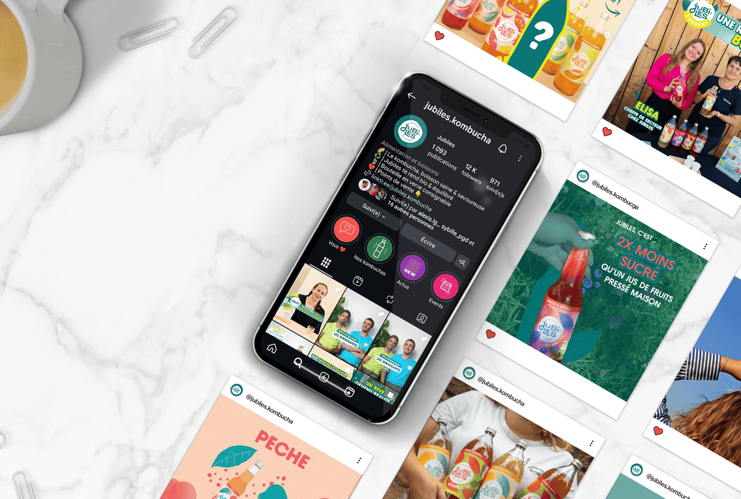 Pendant deux ans, j’ai géré le compte Jubiles Kombucha sur Instagram et Facebook, en développant et en structurant sa présence sur les réseaux sociaux.